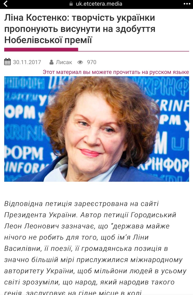 Висунення Ліни Костенко на Нобелівську премію – давня і, безумовно, чудова ідея. От тільки таке висунення не здійснюють через збирання підписів – по суті це безнадійна справа.