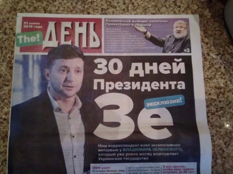 До найпримітивнішого, найвідвертішого і найцинічнішого плагіату вдався Владімір Зєлєнскій, який безцеремонно скористався популярністю україноцентричної газети «День» і випустив свою газету-агітку «The! День» (див.: https://www.facebook.com/100003508151281/posts/2053780028082249?sfns=mo).