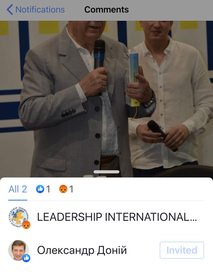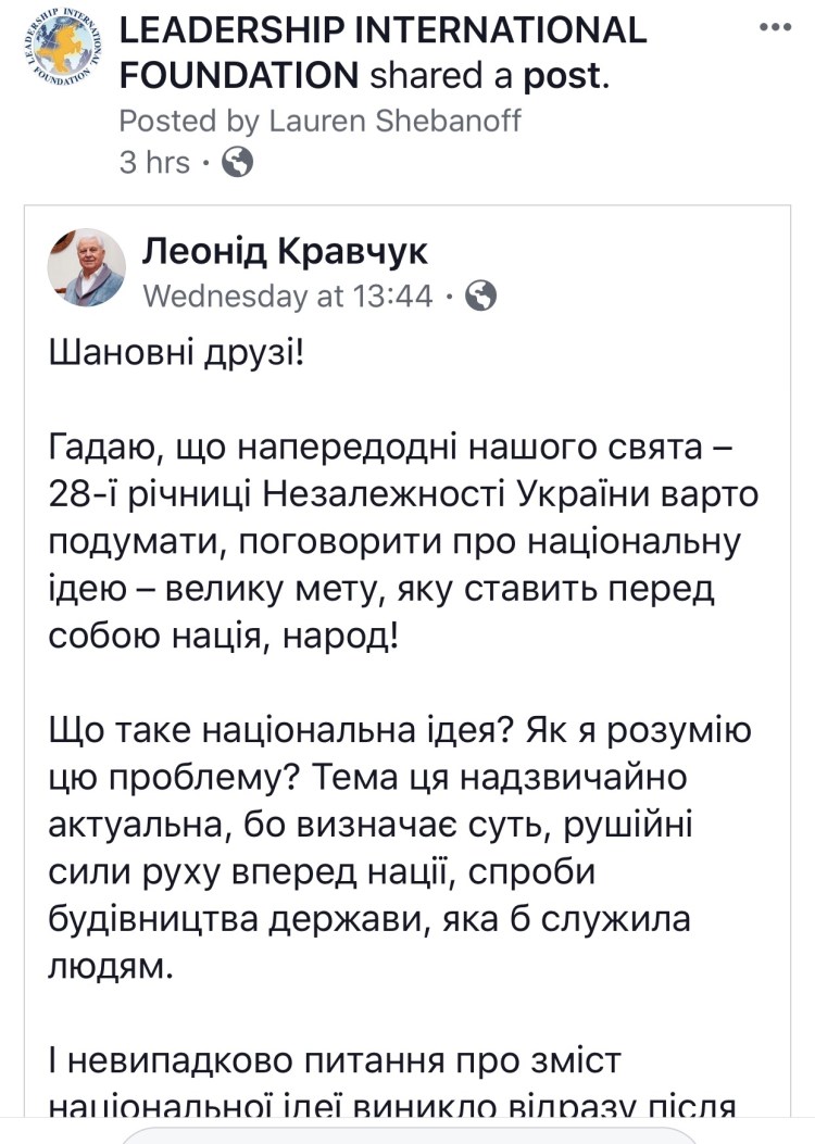 Прикметно, що приблизно в цей час, як відбувалися перипетії з цим записом М. Наєнка, на сторінку Міжнародної Фундації Лідерства хтось від імені адміністратора сторінки поширив запис із сторінки Леоніда Кравчука про книжку О. Донія, і останній поспішив уподобати цей запис.