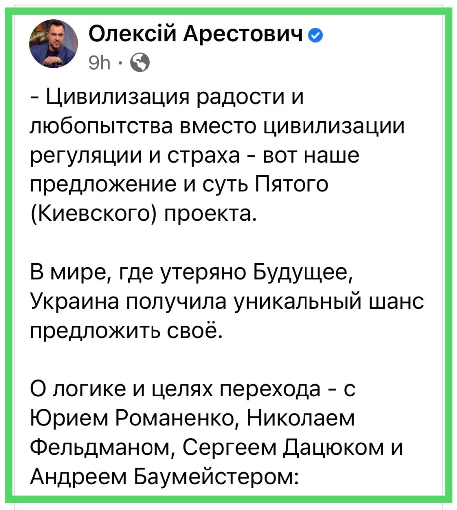 Жартома чи серйозно, Олексій Арестович вкинув на обговорення Юрія Романенка, Сергія Дацюка, Андрія Баумайстера та Миколи Фельдмана ідею відновлення в Україні… монархії.