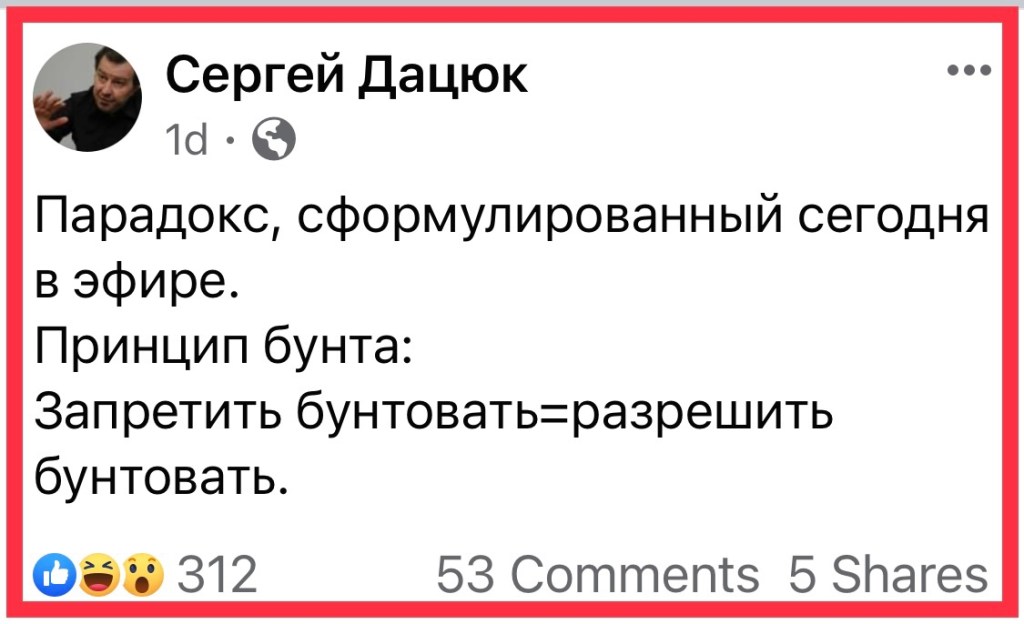 …Це завжди вчаровує, коли практично сторонні люди обговорюють або й вирішують долю України й українського народу, поки він перебуває у стані летаргічного сну, але будити його не ризикують. І слава Богу, бо що спросоння можна почути від філософа, який не бачить відмінностей між поняттями «суспільний устрій» і «спосіб урядування» та системного (система — підсистема) зв‘язку між ними.