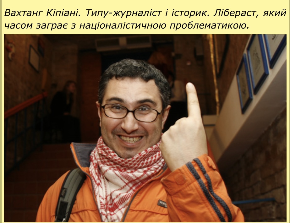 Мені не хотілося повертатися до цієї особи — Вахтанґа Кіпіані, — з якою я вже мав неприємний досвід кілька років тому. Але він сам напрошується на те, щоб про нього була окрема розмова. Не як про людину, бо на особистість він не дотягує, а як про явище, характерне для журналістики й науки незалежної України.