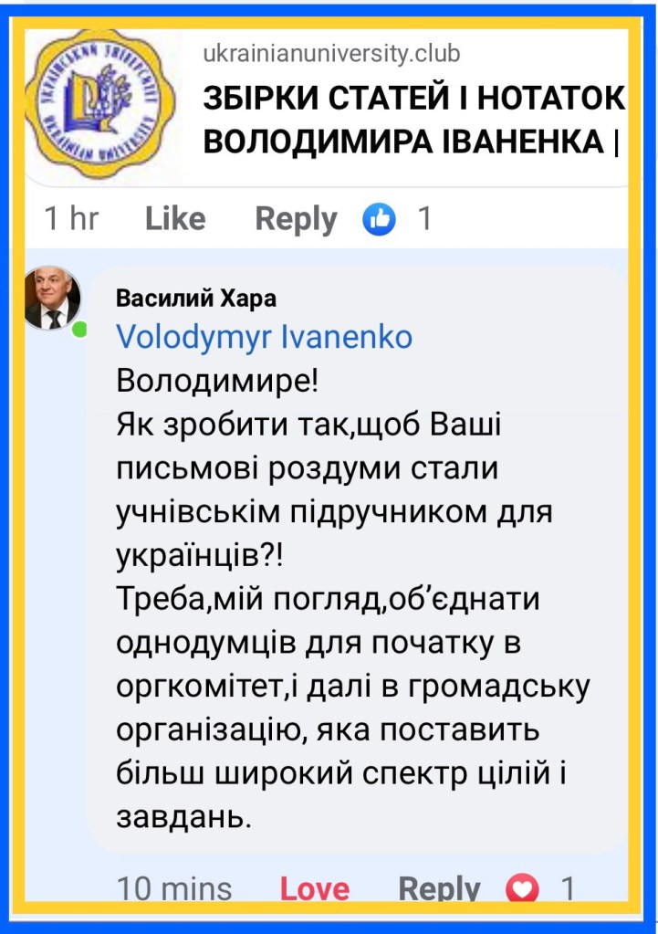 В принципі погоджуючись із думкою В. Хари, я, однак, маю деякі сумніви щодо його пропозиції, і тому в коментарях до його запису я написав: