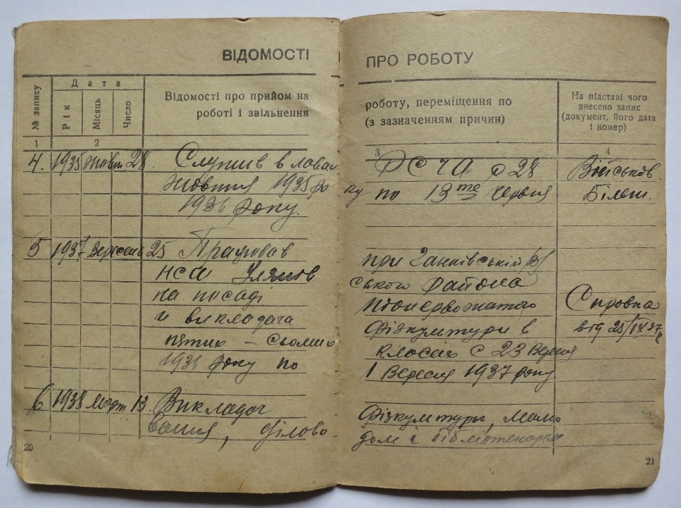 Піонервожатий і вчитель физкультури у V—VII класах Ганнівської (В)НСШ Улянівського району