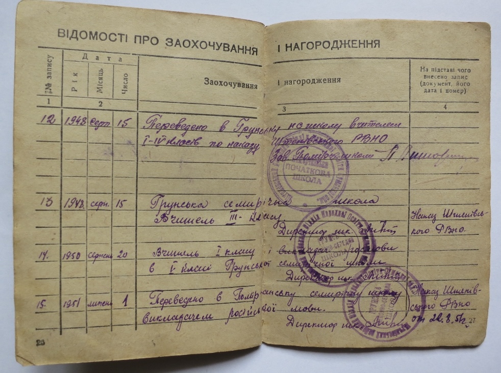 Вчитель фізкультури, малювання, діловод і бібліотекар Ганнівської (В)НСШ Улянівського району