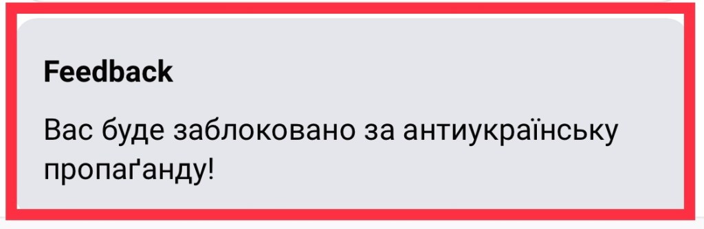 Що мене вчарувало у цьому повідомленні, так це попередження: «Вас буде заблоковано за антиукраїнську пропаґанду!»