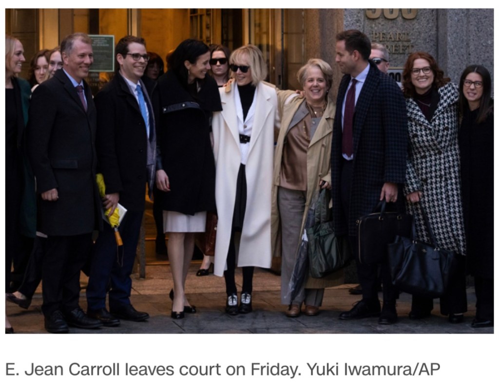 Якби Трамп належним чином поводився на суді й за межами суду, рішення суду напевно було б набагато мʼякшим, ніж було ухвалене. Жюрі (присяжні) одностайно визнало, що щось таки там мало місце бути, і рік тому суд постановив: Трамп має виплатити пані Керролл $5,000,000 (пʼять мільйонів доларів).