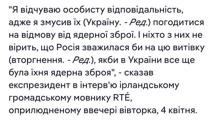Клінтон, як процитовано вище, хоч пошкодував, а Кравчук — ні».