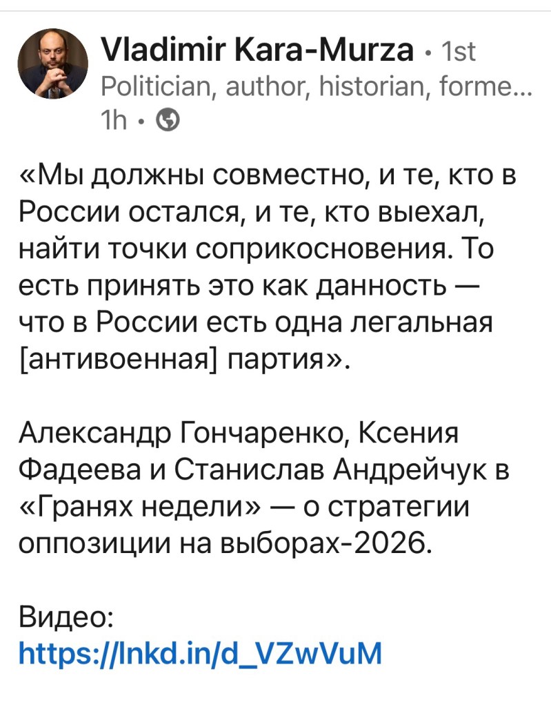 Від часу появи російських «опозиціонерів» в екзилі я намагаюся завести з ними бодай якусь дискусію (В. Кара-Мурза давно вже є серед моїх друзів на LinkedIn), але вони не вступають у будь-який обмін думками й поглядами. Це іґнорування також багато чого говорить про істинну природу цієї російської «опозиції».