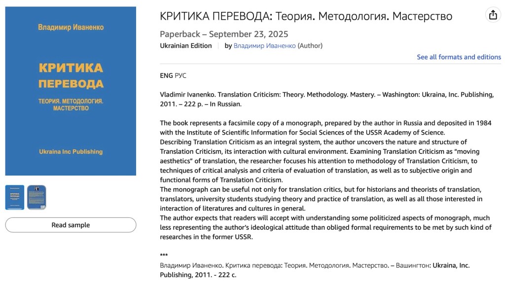 Хоч праця є у відкритому доступі на сайті Academia.edu, я сподіваюся, що її охоче купуватимуть на Амазоні та Букс: купити книжку все-таки значно дешевше, ніж роздруковувати .pdf файл.