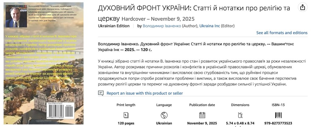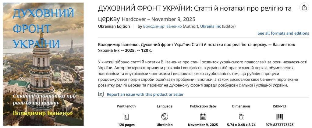 Володимир Іваненко. Духовний фронт України: Статті й нотатки про реліґію та церкву. — Вашинґтон: Україна Інк — 2025. — 120 с.