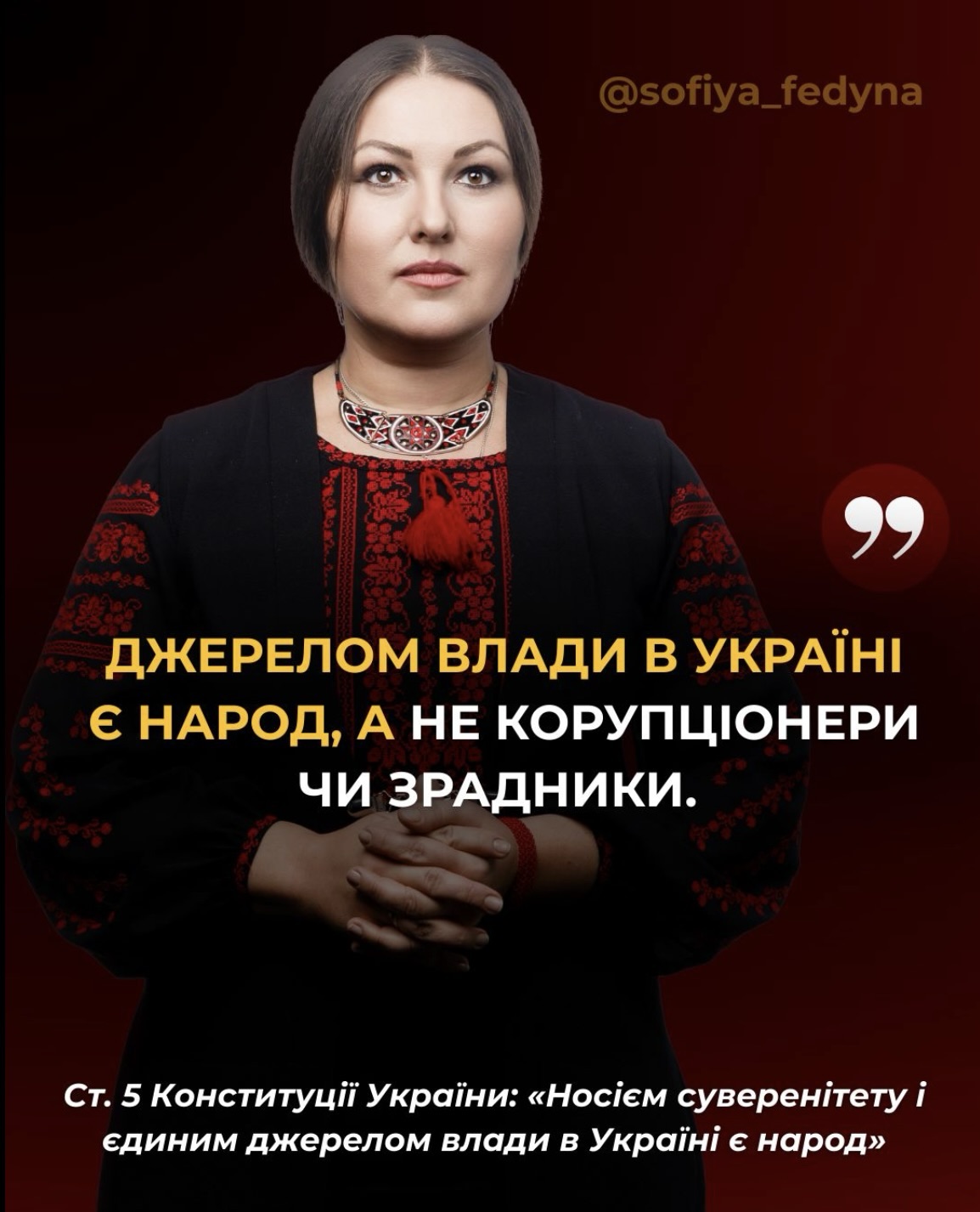 Як не дивно це звучить, але названі Софією Фединою люди — корупціонери і зрадники — є частиною названого джерела влади. Так що формально норма Конституції не порушена.